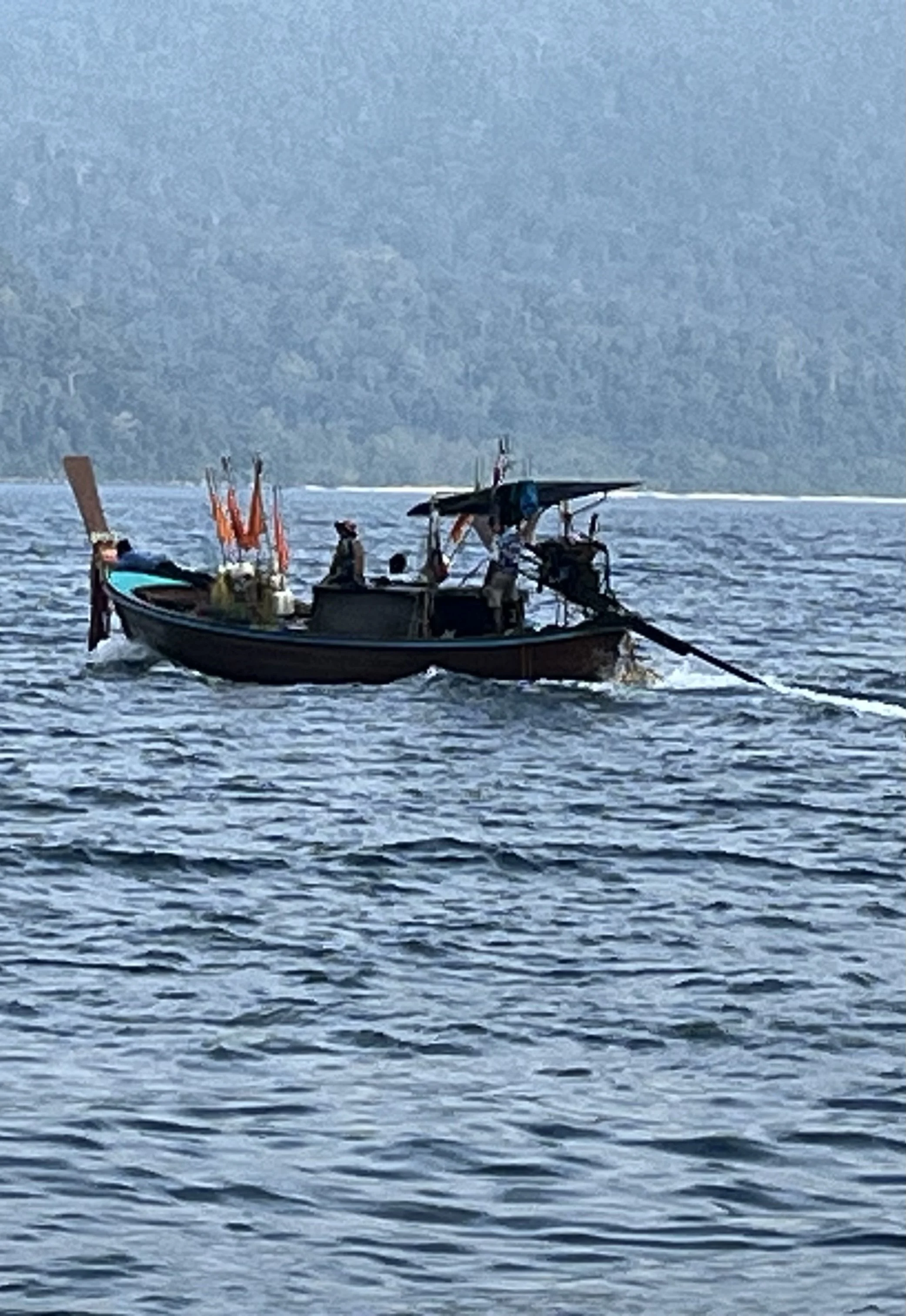 The picture of the day is a picture of a Thai Fishing Boat. Note that it has its engine on a stalk with a long shaft at which the propeller is at the end. I recall their boats were like this when I first visited in 1990 some 35 years ago.