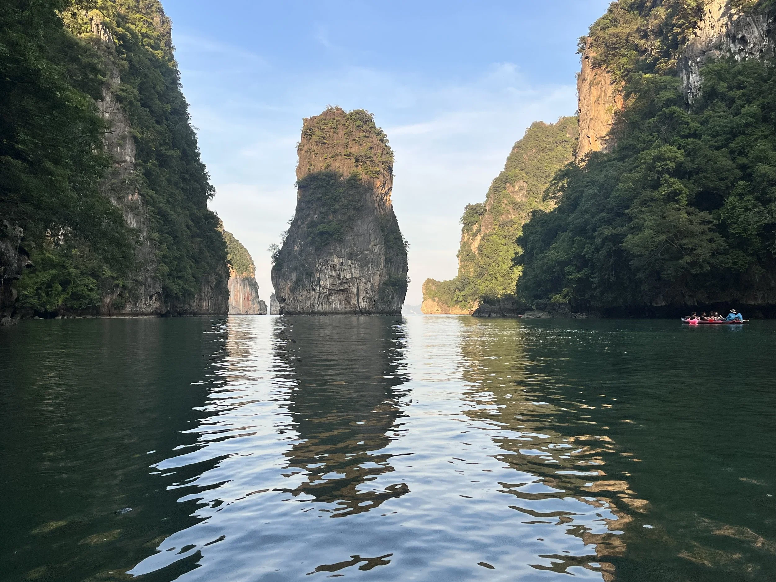 These amazing islands have Hongs’ which you can visit and go into. "Hongs" in Thailand refer to island caverns, specifically the enclosed lagoons inside limestone islands in places like Phang Nga Bay and the Hong Islands near Krabi. These "rooms" are only accessible through narrow sea-level caves and are popular for kayaking, snorkelling, and enjoying the scenic, hidden lagoons. A hong is a geological formation where the centre of a limestone island has been hollowed out by the sea, creating a natural, open-air room with steep walls.