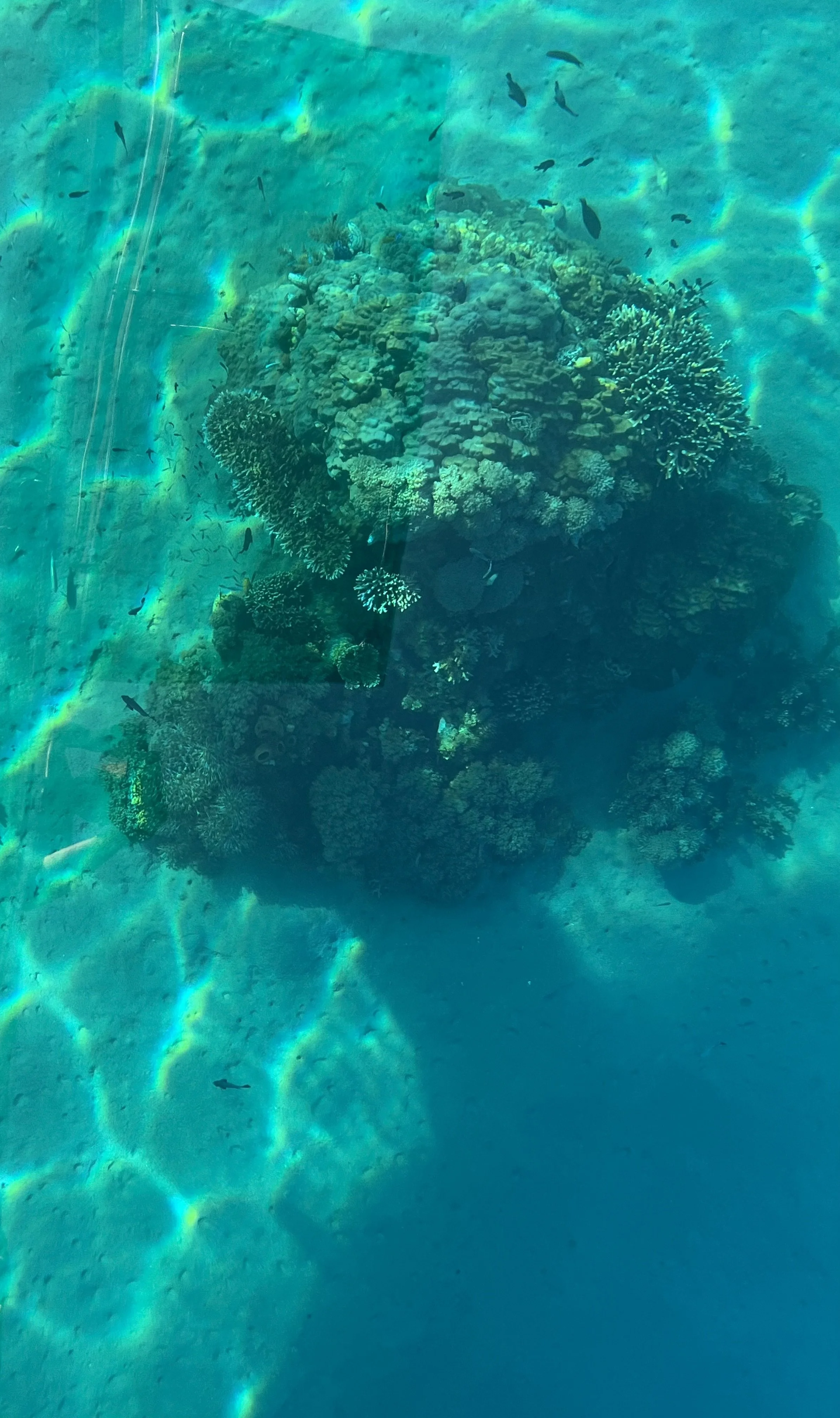 The picture of the day is a picture I took on my phone of a coral bommie when I got up. This was not an underwater camera but the iPhone from the deck. This shows how clear and still the water was.