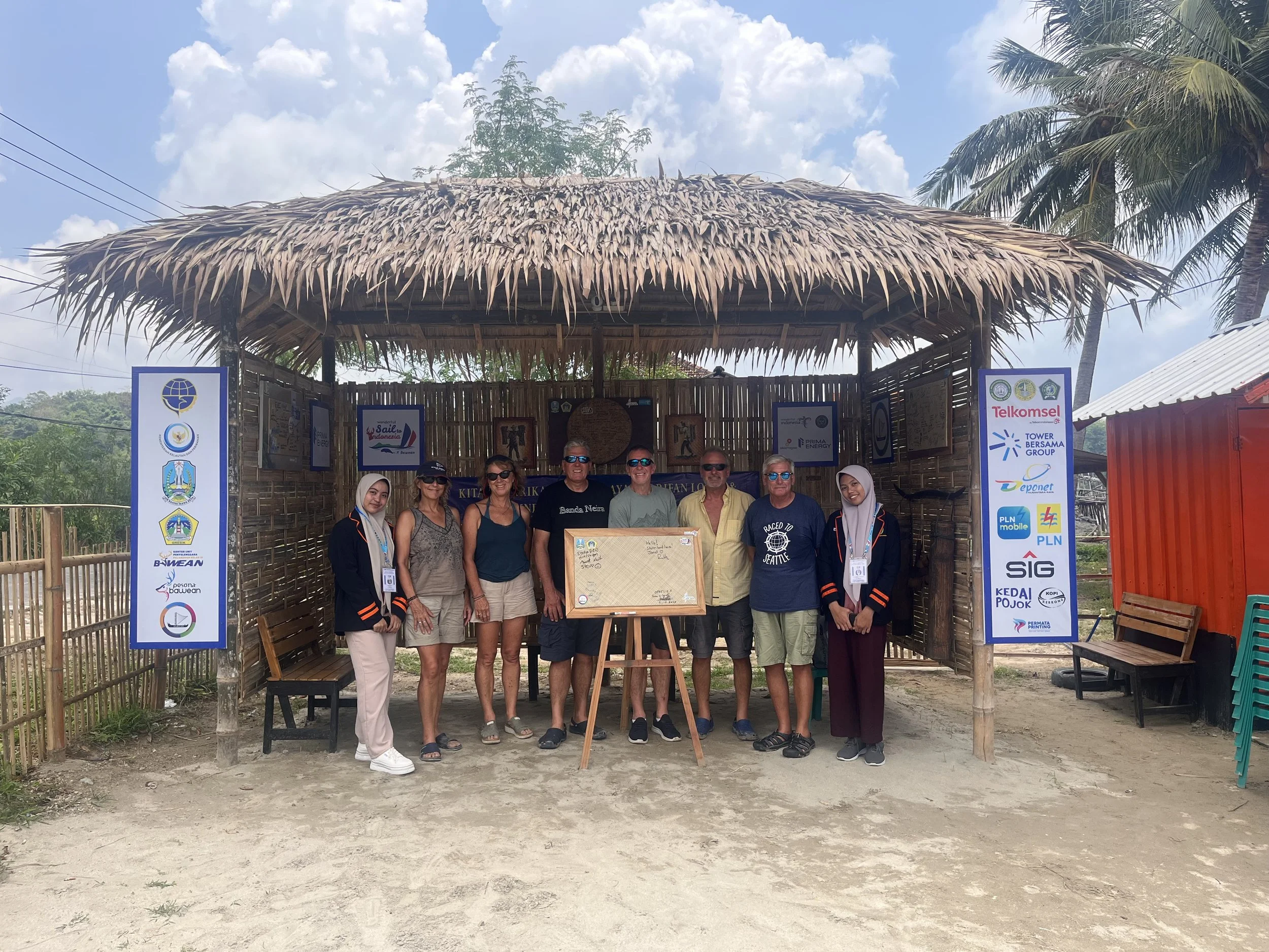 We motored over to the beach near the village and there were some flags and tents which was the welcoming point for the rally. We were met by Asia and welcomed. We had to sign some paperwork and write on a board our names. We discussed going on a tour tomorrow which she said she would arrange. She suggested we walked with her along the road.