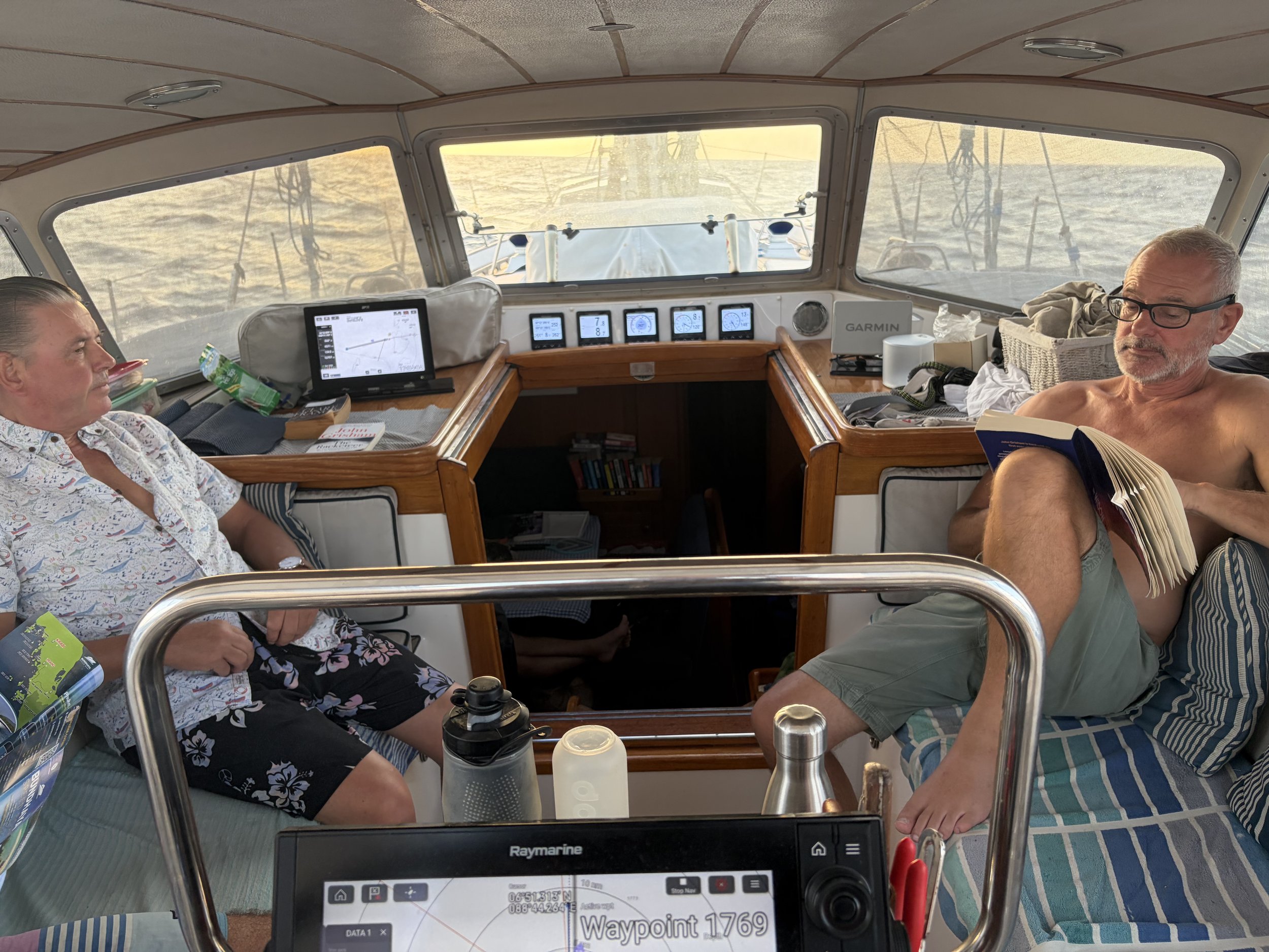 The picture of the day is Mark and Keith – who share a watch but they are here relaxing off watch and putting the world to rights.