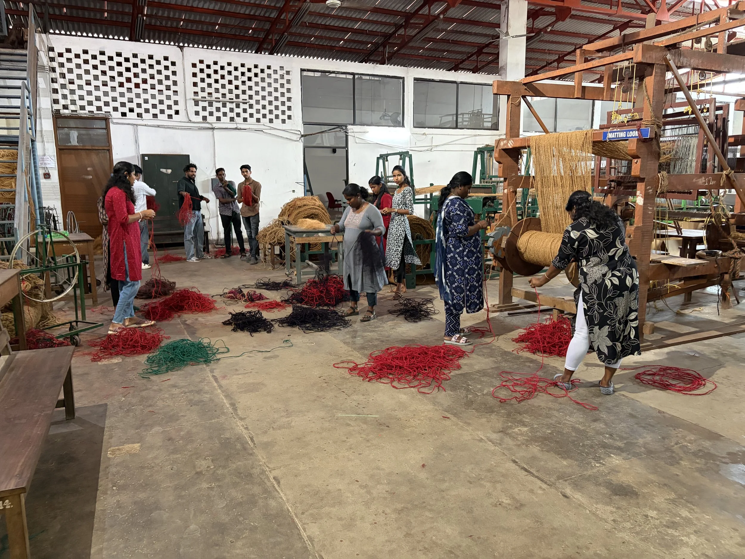 The picture of the day is at the Coir factory in which you can see the loom and some coir they have dyed and are sorting.